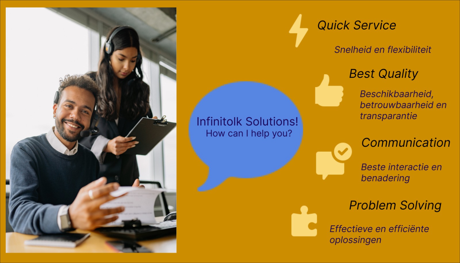 Infinitolk Solutions biedt u de mogelijkheid om al uw klantenservice- en backoffice problemen uit handen te nemen.